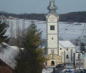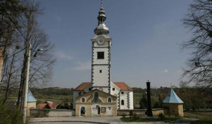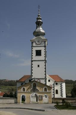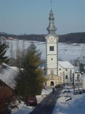 The parish of Donja Voća is mentioned in 1334 in the first complete census of the parishes of the Bishopric of Zagreb as "Parochia antiqua - Ecclesia S. Martini apud Woycha". The church of Voća has a single nave with two chapels on the sides. The church has been rebuilt several times, and only in the second half of the 18th century did it take on its present Baroque form. Its 41 m high tower is also in the Baroque style and is surrounded by a wall. In the parish church there are two large altarpieces of Saint Martin. The first, depicting Saint Martin as bishop, was probably placed on the former high altar. The other depicts Saint Martin as a Roman soldier in the famous Amiens scene. The same motif also appears on the façade of the bell tower of the parish church, which was painted during the last renovation of the church at the end of the 20th century.