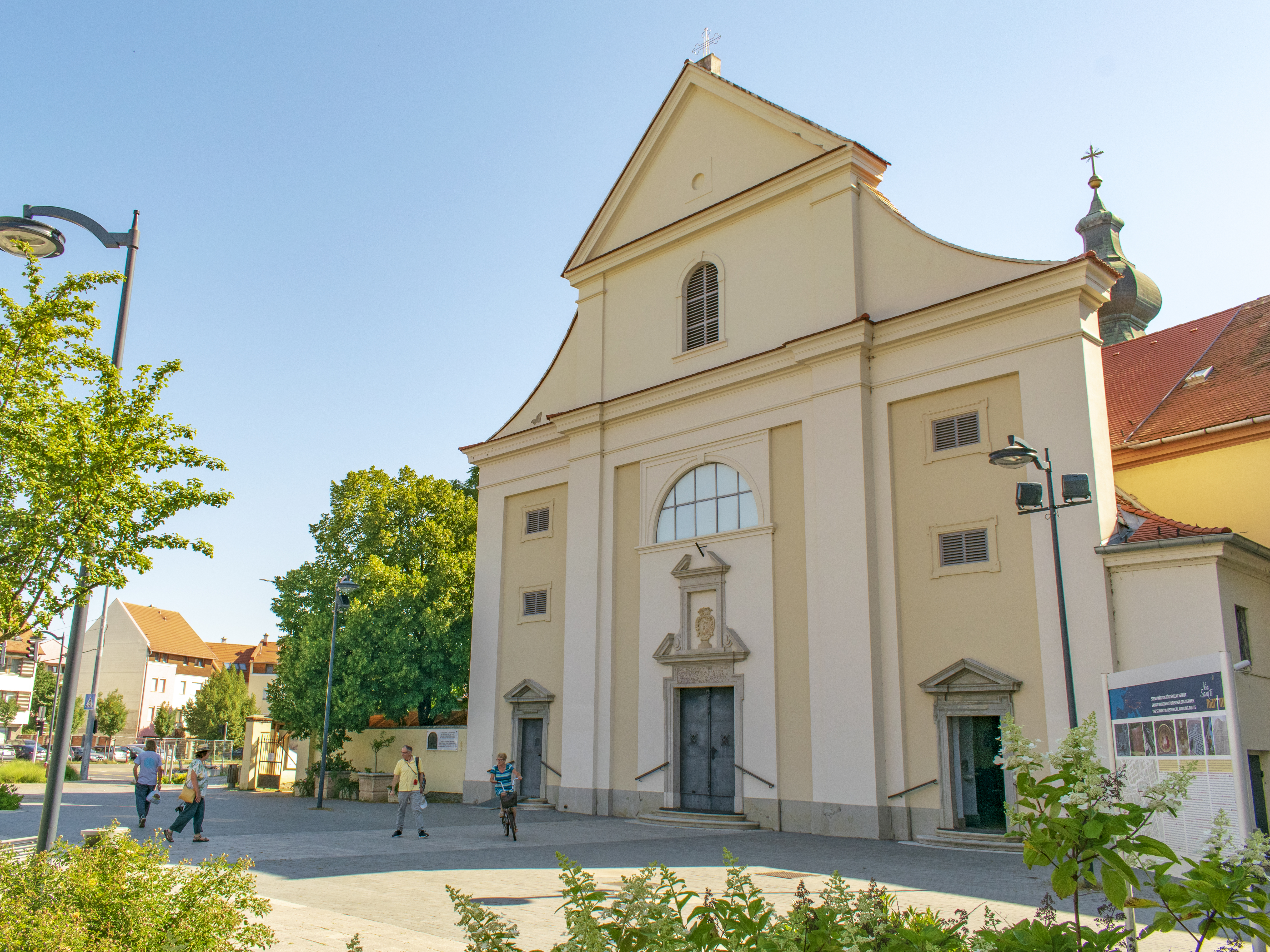 The people of Szombathely are particularly close to the person of Saint Martin. Above the entrance to the chapel of the church dedicated in his honour is the inscription HIC NATUS EST SANCTUS MARTINUS, meaning 'Here was born Saint Martin': Szombathely is faithful to the cult of Saint Martin and is building international relations with European cities that played a significant role in Martin's life. The 'European Saint Martin's Cultural Route' from Tours to Szombathely, the symbol of the VIA SANCTI MARTINI, the bronze footprint of Saint Martin, was placed on the steps of the chapel of Saint Martin's Church in 2005. The parish next to the church is home to the Saint Martin Visitor Centre, where pilgrims following in the footsteps of Saint Martin are welcomed by a valuable exhibition.