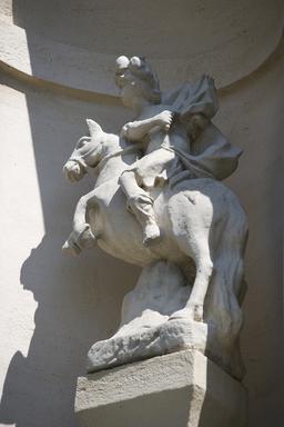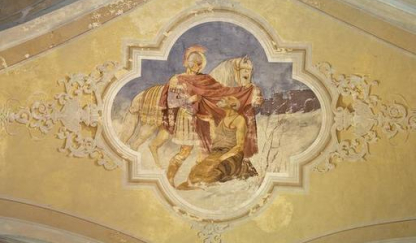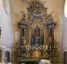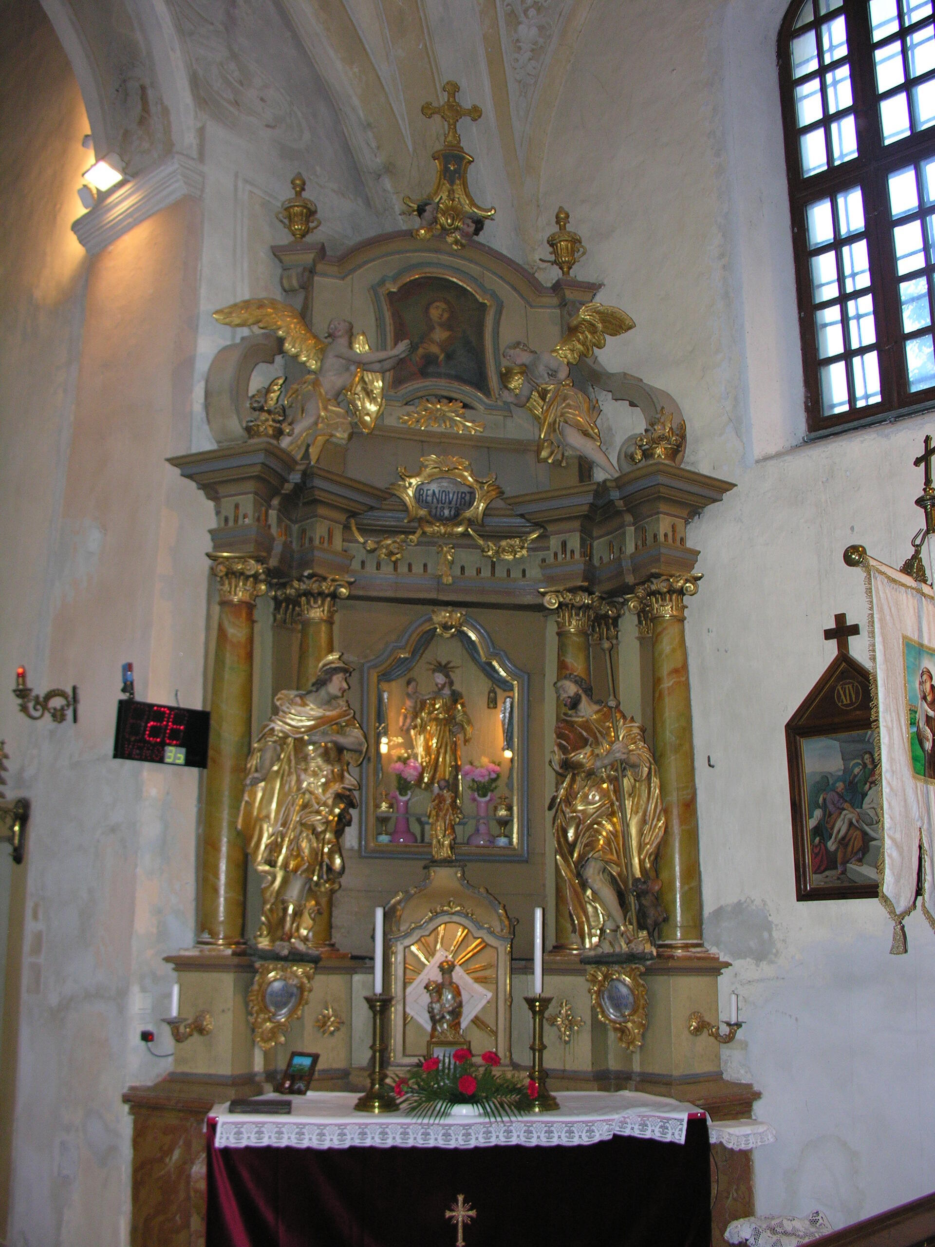 On the outskirts of the settlement, archaeologists have found the remains of a Roman limes. Its first church, dedicated to Saint Martin, was built in the 13th century. Its tower was built on the walls of a Roman watchtower. During the last Turkish campaign against Vienna in 1683, the village was destroyed. All that remains of the medieval building are the pointed-arched, masonry windows of the tower, the mural of the south wall and the 14th century sacristy niche. The church took its present form in the Baroque period. In one of the sculpted windows on the west façade is a statue of St. Martin, the church's namesake saint. The painting on the main altar depicts the glorification of Saint Martin. At the bottom of the painting is the text MARTINUS HIC PAUPER COELUM DIVES INGREDITUR HYMNUS COELESTIS HONORATUR. The rich decoration of the altars, the angel figures and the gilded statues of the saints show signs of the mature Baroque. On either side of the pulpit are depictions of bishops, one of whom is presumably St Martin offering gold coins to a beggar at his feet. The other shows the bishop holding a flaming heart and a shepherd's crook. On the ceiling in front of the choir is the scene of Amiens. Martin, dismounting from his horse, gives the beggar his cloak. A marble plaque in the wall tells of the village where the great composer Ferenc Liszt's great-grandfather and grandfather Ádám Liszt were born.