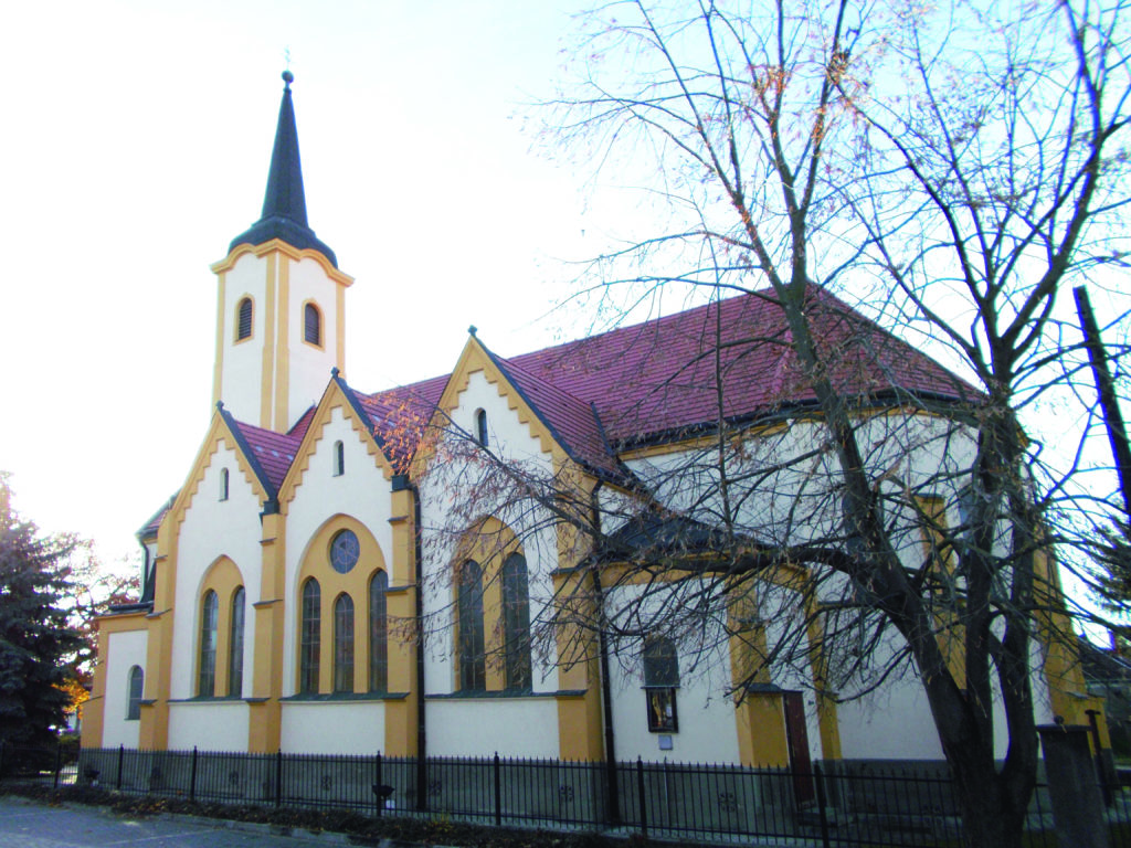 The present church was built in 1910 under the rectorship of Endre Bányász, to the designs of the renowned Magyaróvár architect Béla Hőnel, with the support of the parishioners and the donation of Count Sándor Pálffy and his wife Erzsébet Batthyány. On March 1, 1910, the excavation of the new foundations around the old church began, and mass was celebrated in it until April 5, when the demolition of the walls began. The old tower was preserved and the new façade was added to it, with the small vase-shaped windows above the exits. The nave and the sacristy also fit together harmoniously. The church was completed by 25 September 1910, when it was already open for mass.