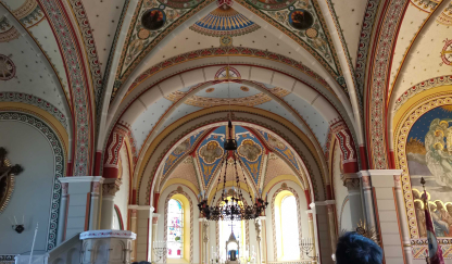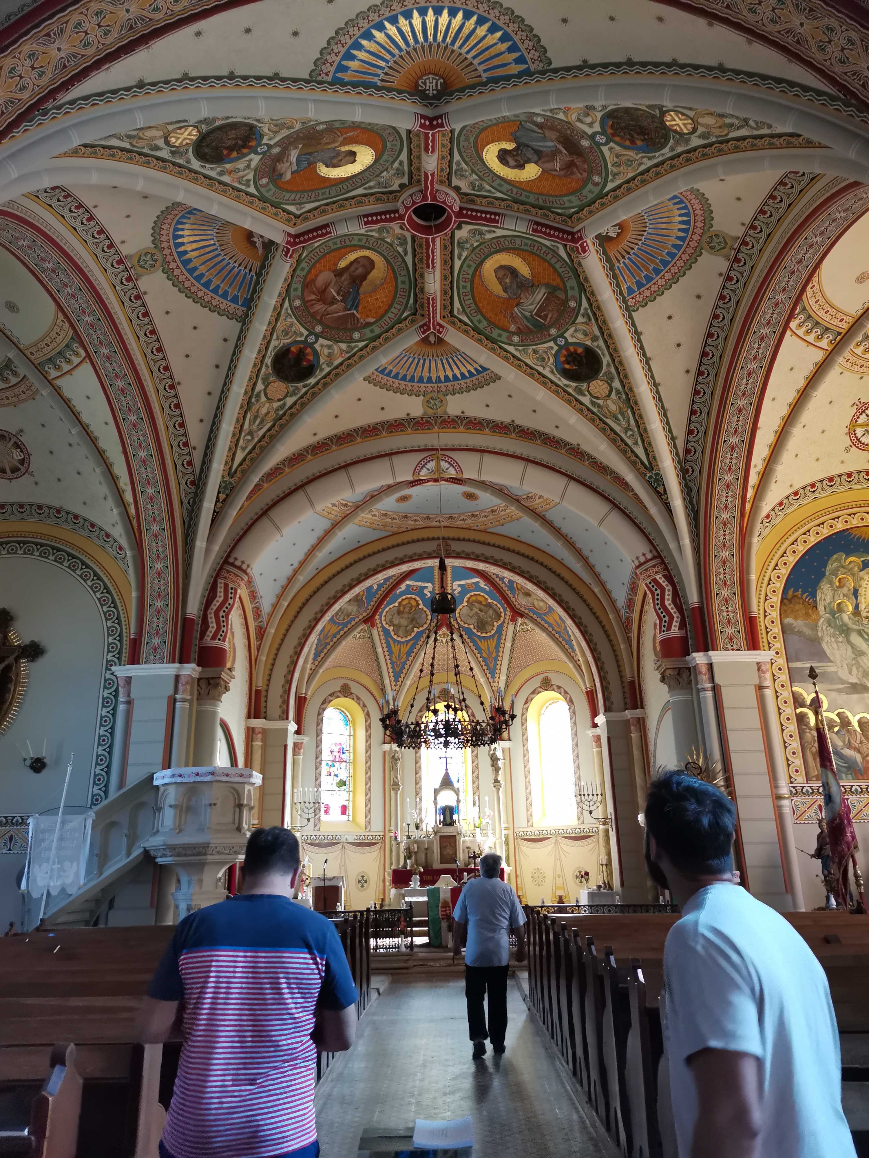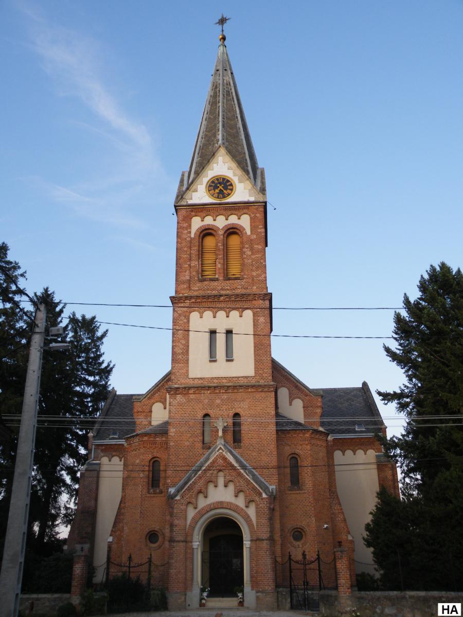 At the turn of the 20th century the parish church fell into disrepair, so Prince Miklós Esterházy had it demolished and rebuilt in 1905. According to the description of the parish priest at the time, József Wallner, the plans for rebuilding the 'ramshackle building' from the foundations were drawn up by the Viennese architect Ludwig Schone in a neo-Gothic style similar to that of the Church of the Sacred Heart of Jesus in Kőszeg. Some of the stone carvings of this old church are also found in the new church. The stained-glass windows of the new church, depicting St. Martin, were made thanks to a donation by Dénes Szluha Szluha of Verbo. The painting of the nave, which depicts the scene of the sharing of the cloak of Amiens, was made in 1882 by the Austrian painter Josef Veiter. The 1834 seal of the parish of Nagypöse also depicts the scene of the sharing of cloaks: Martin on horseback offers half his cloak to the beggar on the ground. The building is a monument