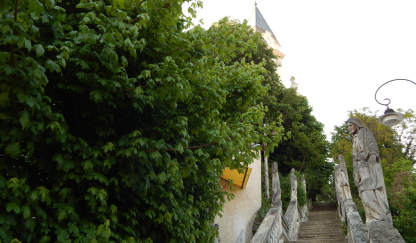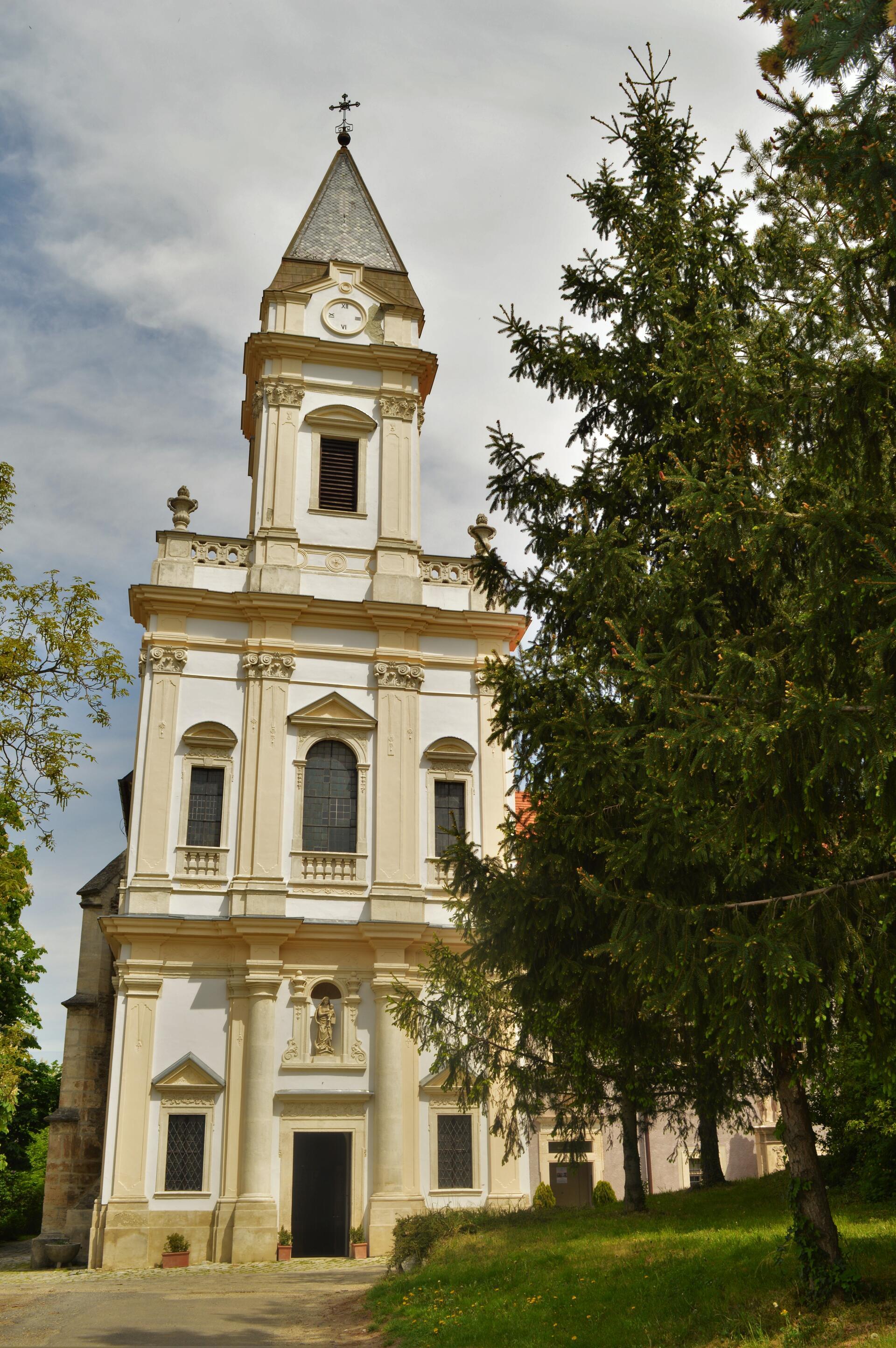 A few years later, his fellow monks settled there and began to build the church and monastery around 1482. The nave of the church, built in the Gothic style, has a nave with five naves and a sanctuary with two naves and mullioned windows. Its main altar is decorated with a 16th century icon of the Black Mary of Czestochowa. Her veneration is still alive today, with jewels and crowns attached to the image. The side altar and the stalls of the church, rebuilt in Baroque style, were painted around 1750, the mural of the arch-vassal apostles around 1770 and the benches carved in Rococo style. After the dissolution of the Pauline order in 1786, the church stood empty until 1827. The monastery building was first used as a miner's dwelling, then as a hospital and later as a warehouse. From 1892 to 1950, the building housed a convent of Carmelite nuns. On the façade you can see the coat of arms of the Nádasdy and Esterházy families.