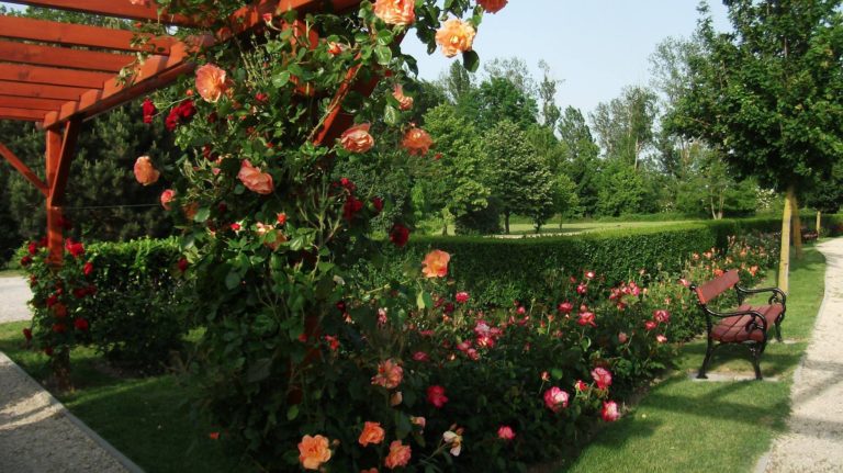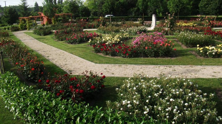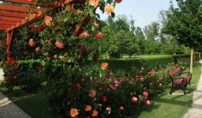 Wrought-iron rose planters and pergolas add to the garden's ornamental appeal. The rose garden could become a real tourist attraction in Szigetköz.