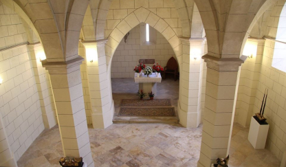 In the second half of the 17th century, a new crypt and a chapel of Loreto were built on its northern side. In the 19th century it was rebuilt in neo-Gothic style. On the eastern wall of the sanctuary there is a window, probably original from the Romanesque period. Five red marble tombstones can be seen in the walls of the sanctuary. In the chapel of Loretto, an ornate urn preserves the heart of the first Charles Khuen-Héderváry. There is also an urn with carved snakes on a stylised Corinthian column. Next to it, in a niche covered with a coat of arms, are three large silver urns. Behind the chapel's table altar is a wooden grid reminiscent of the Greek Orthodox churches. Above its parapet are the imperial, royal and family coats of arms, decorated with Baroque ornaments. Behind the grille is a statue of the Virgin Mary carved in ebony. The Chapel Gallery hosts temporary exhibitions.