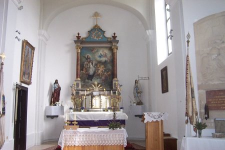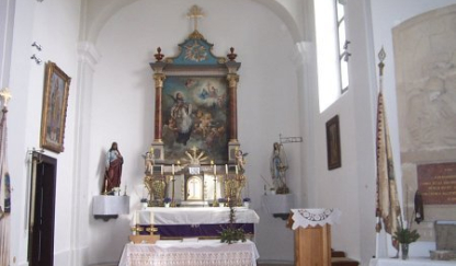 Its altarpiece, depicting the martyr Saint John Nepomuk in the company of angels, was painted by László Patay. The altarpiece of the old church can also be seen on the wall. The organ is a protected monument. The former parish building and school next to the church is now owned by the municipality. Among the sacral traditions of the village are the consecration of the house, the farewell of the church and the procession of the Lord's Day, as well as the pilgrimage on foot to the shrine of the Tearing Virgin of Győr on the embankment of the Moson-Danube in March every year. The village is the birthplace of the illustrious Jesuit press abbot Béla Bangha, marked by a memorial plaque. A statue of St John Nepomuk greets those arriving and departing from the village on the outskirts of the village.
