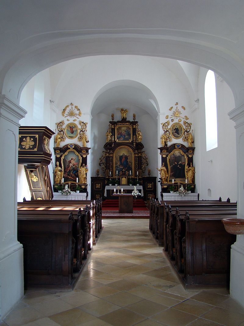 A középkori templom minden jel szerint kőépítmény volt, így alakját, állagát megőrizhette jó kétszáz éven át. Kényszerű beavatkozásokat a török pusztítások tettek szükségessé, nyomukban időről-időre be kellett tömni-kötözni a gyújtogatás és rombolás ejtette sebeket. Ennél többre a lépten-nyomon földönfutóvá vált lakosság nem is gondolhatott. Csak késve, 1732-34-ben jöhetett szóba a még romos templom újjáépítése. A korabeli rajz szerint a vázán, stílusán nem módosítottak, a belseje viszont már barokkos lehetett. Valamivel később a Ny-i homlokzat fölött négy cölöpön nyugvó hagyma alakú fatorony bújt ki a padlástérből. A bejárati ajtó elé kis csapott fedelű belépőt is ragasztottak, a falakhoz pedig mindkét oldalon négy-négy támpillér járult. Belül támgerendák biztosították a karzat gerendapilléreit is, ide telepítették a hatváltozatú orgonát. Oltár kezdetben egy volt, később adományból került egy másik is (Mária, ill. Nepomuki Szt. János tiszteletére.)