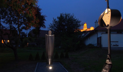 Az estétől reggelig tartó világítás különleges misztikus fényeivel „rásegít” a látványra, többletet ad a kompozíciónak: a földbe épített lámpák, megvilágítva az oszlopokat, a szíven egy könyv formáját rajzolják ki, a szentírásra utalva, a gránittáblák felett hajlított, csúcsban végződő fém pedig koronát vetít az oszlopra, szelíden jelezve Krisztus királyságát.