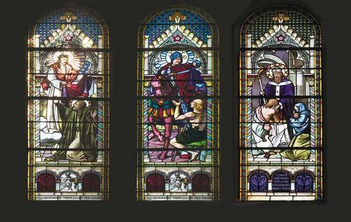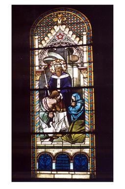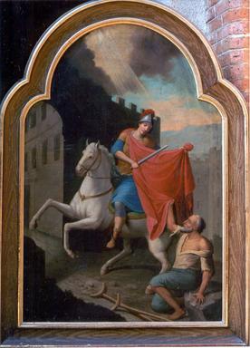 Szent Márton alakja az oltárképen és az üvegablakokon egyaránt felfedezhető. E régi templom néhány kőfaragványa az új templomban is megtalálható.