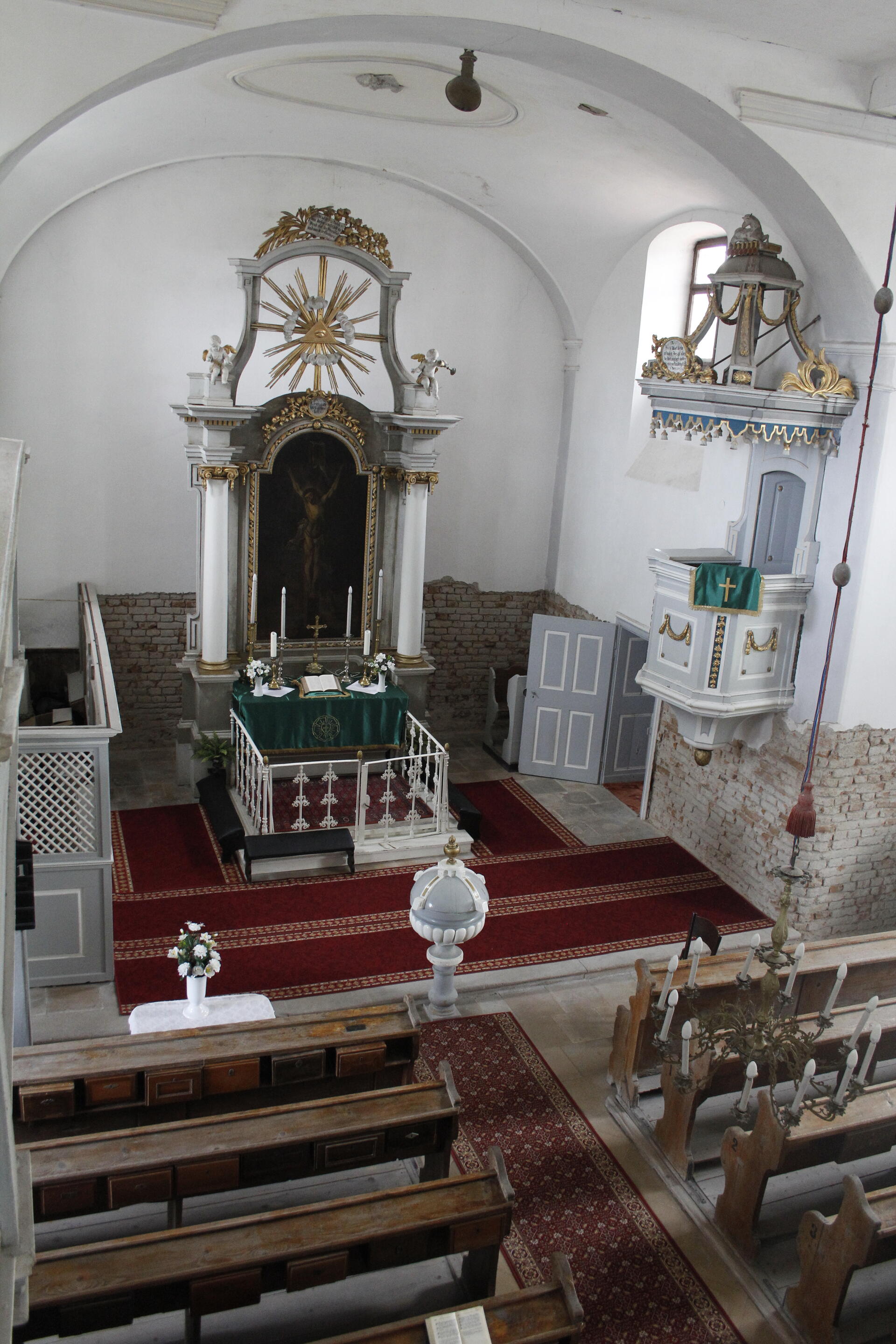 A vallásüldözés lazulásával a kijelölt artikurális települések már építhettek templomot, de csak eldugott helyeken, torony nélkül, és utcafrontra nem nyílhatott a bejárat. A templom II. József szabad vallásgyakorlást biztosító rendelete után barokk stílusban épült, 1784-ben, amint a homlokzaton lévő gót betűs tábla tanúsítja. Az oltár, a szószék és a keresztelőkút 18. század végi copf stílusú munka. A templomot a 19. század közepén belső karzattal látták el, amelynek tartószerkezetei, lépcsőkorlátjai ritkaságnak számít. A templomhoz kissé idegenül kapcsolódó tornyot 1923-ban emelték.
