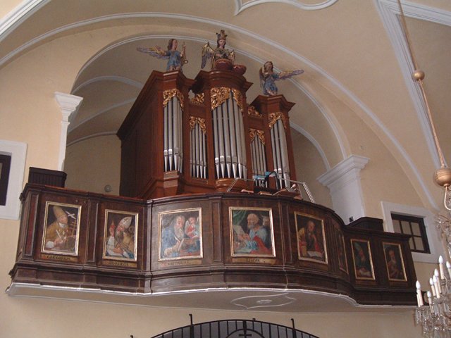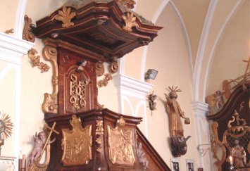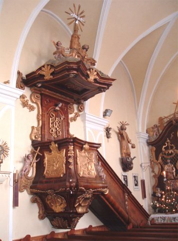 A templom fából faragott berendezése a XVIII. században készült. A szószék oldalán az adományozójának, Barkóczy Máriának az arcképét örökítették meg. A falakat barokk faszobrok díszítik. A kerub fejekkel díszített keresztelő kút medencéje 1745-ből származik. A karzat mellvédjén az egyházatyákat és az evangélistákat ábrázolták. A templom orgonáját 1736-ban készítették Bécsújhelyen.