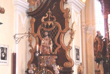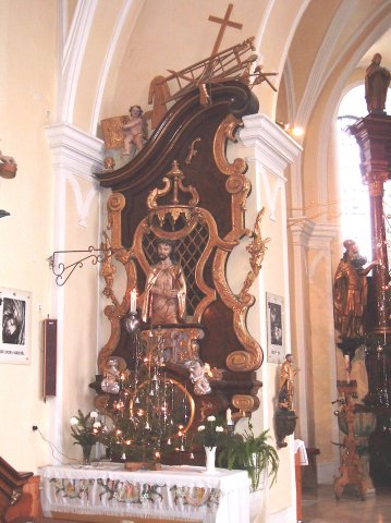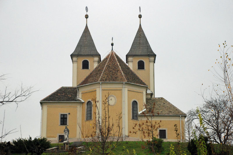 A templom két oldalán levő dombon a Kálvária és a Szent Szív-emlékmű magasodik. Széchényi Zsigmondné állíttatta 1736-ban a Szent Szívet és az eredeti feszületet. 1767-ben mindkettőt újabb szobrokkal vették körül, amelyet Schaller István festett ki.