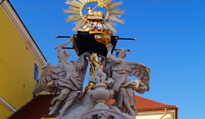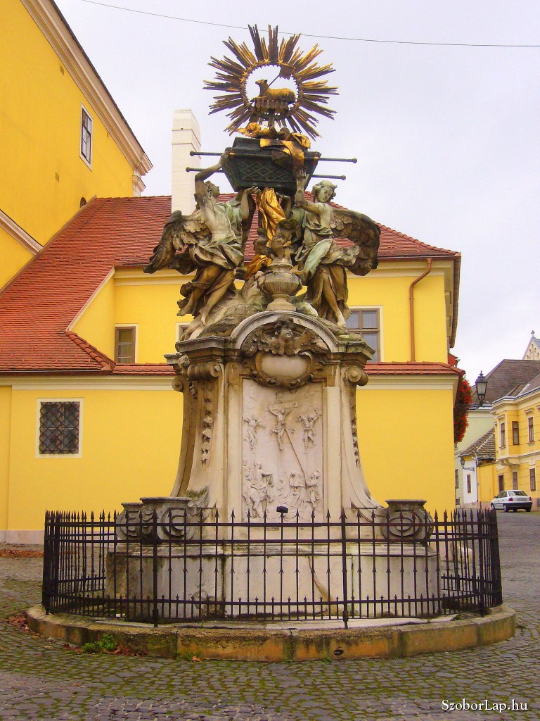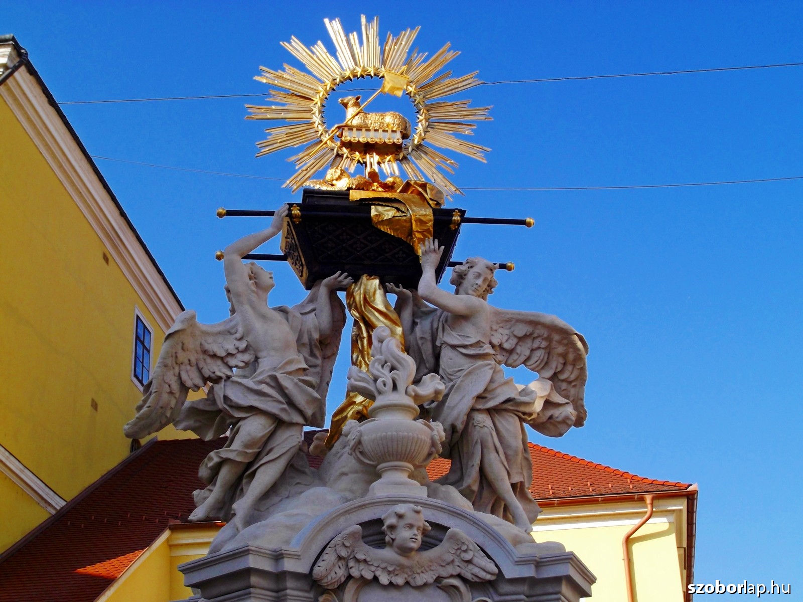 Szó szerint szentségtörés történt tehát, s akkora botrány lett belőle, hogy VI. Károly német-római császár (azaz III. Károly magyar király) azonnal elrendelte, hogy állítsanak emlékművet a Frigyláda ábrázolásával, hiszen Úrnapján Krisztus testét és vérét ünnepeljük, s ábrázolásakor általában a Frigyládát jelenítették meg. A szoborállításhoz szükséges költségeket a győri zsoldos katonák ellátmányából fedezték. A barokk szobor a Gutenberg téri talapzaton kapott helyet. A frigyládán dicsfénysugárban ül Isten báránya, az Agnus Dei. A legenda szerint a monstrancia összetört darabjait a lezárt ládába helyezték el, amit gondosan lezártak és az angyalok őrzik. Az 1731-ben készült szobrot Joseph Emanuel Fischer von Erlach tervezte, a szobrász Antonio Corradini volt.