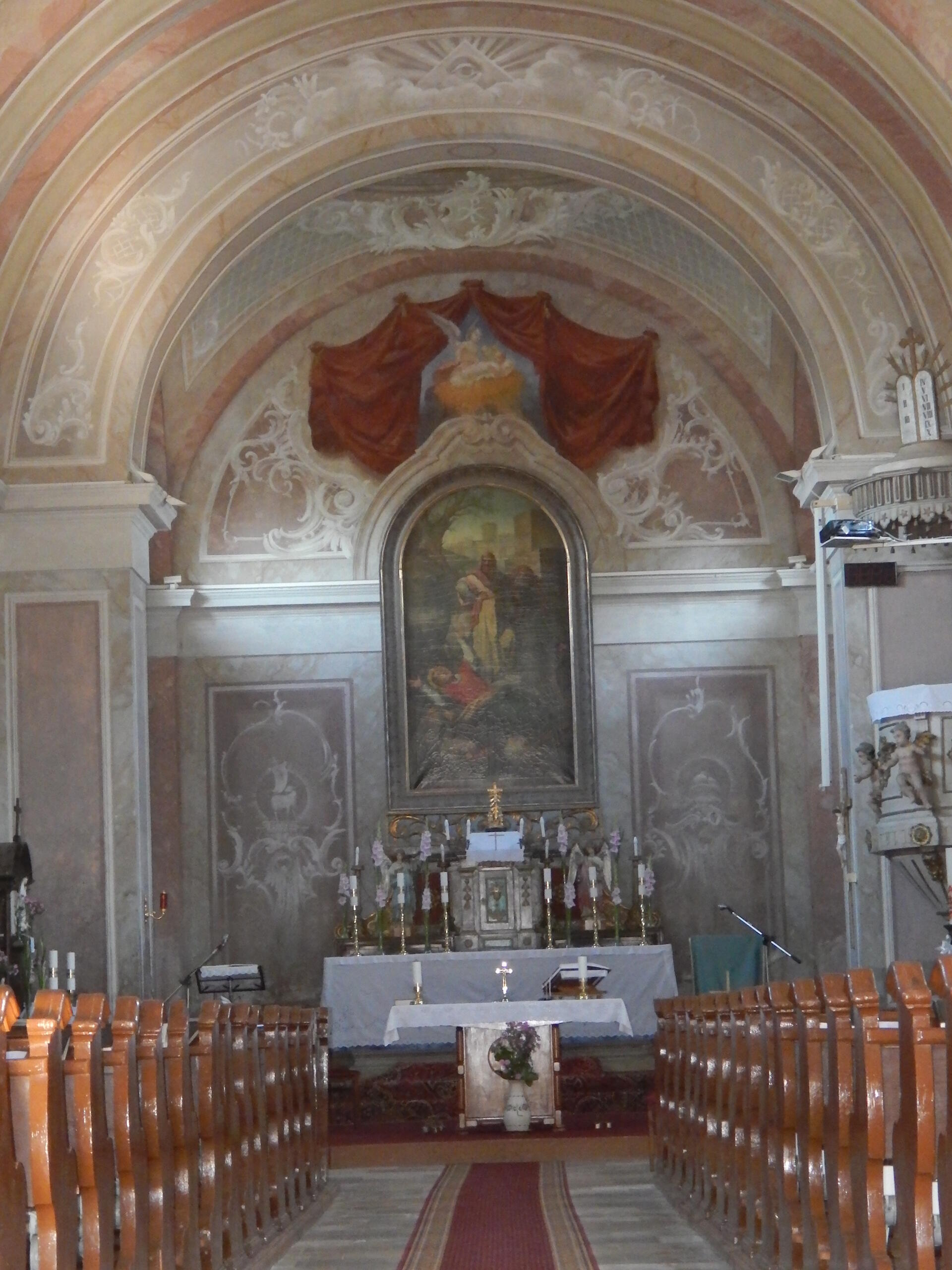 A falu első templomát Széchényi Lőrinc építtette, és fia, Pál nagyprépost (később püspök, majd kalocsai érsek) szentelte fel 1677 körül. A mai templom 1843-44-ben épült, késő klasszicista stílusban, Szinger György irányításával. A régi templomból megmaradt húsz férőhelynyi pad és az 1718-ból való kehely, amelyen a GVNT. SIGHET felirat látható.