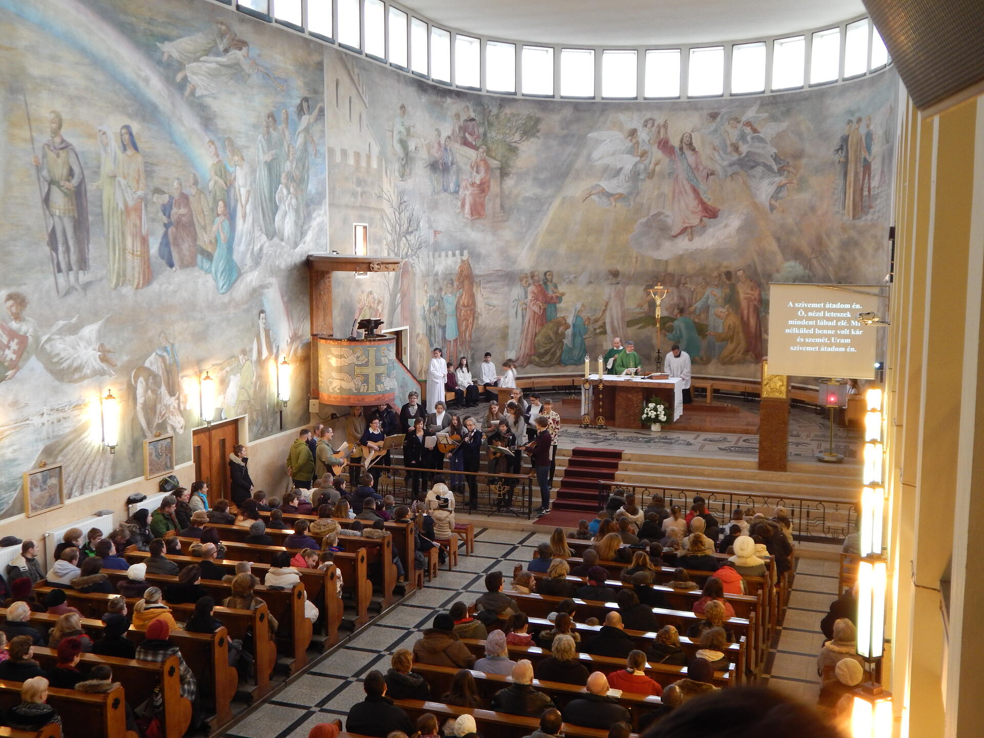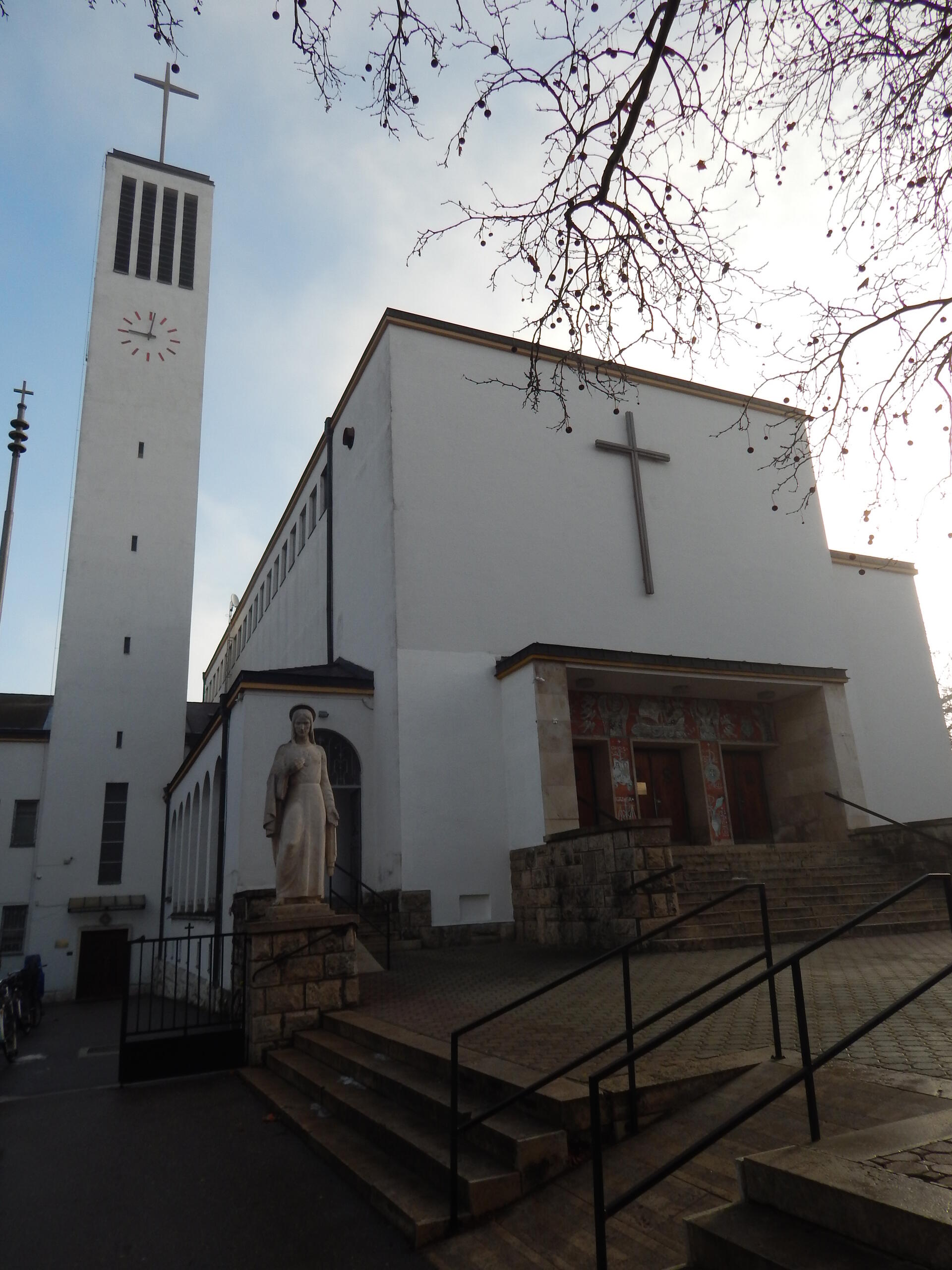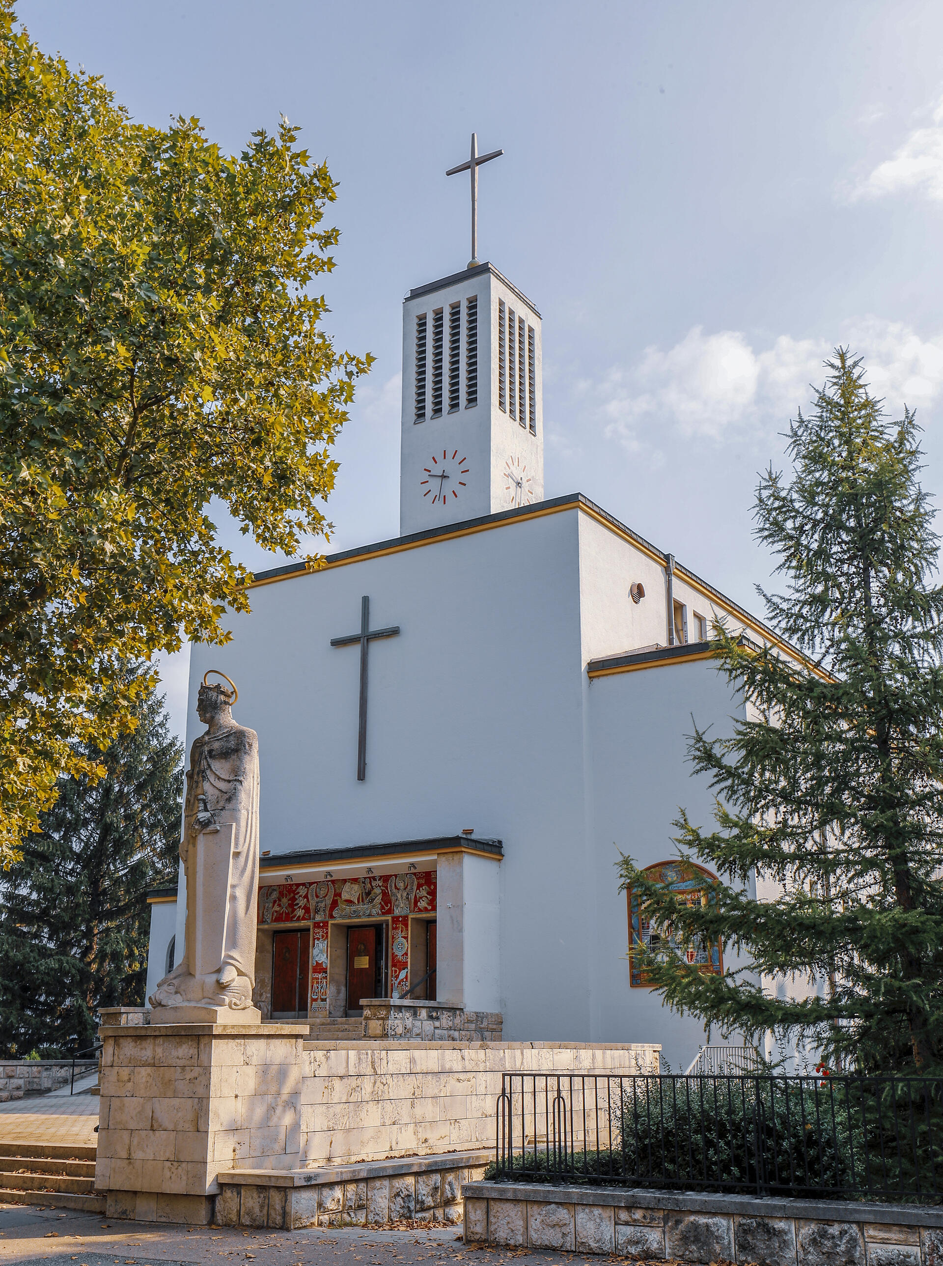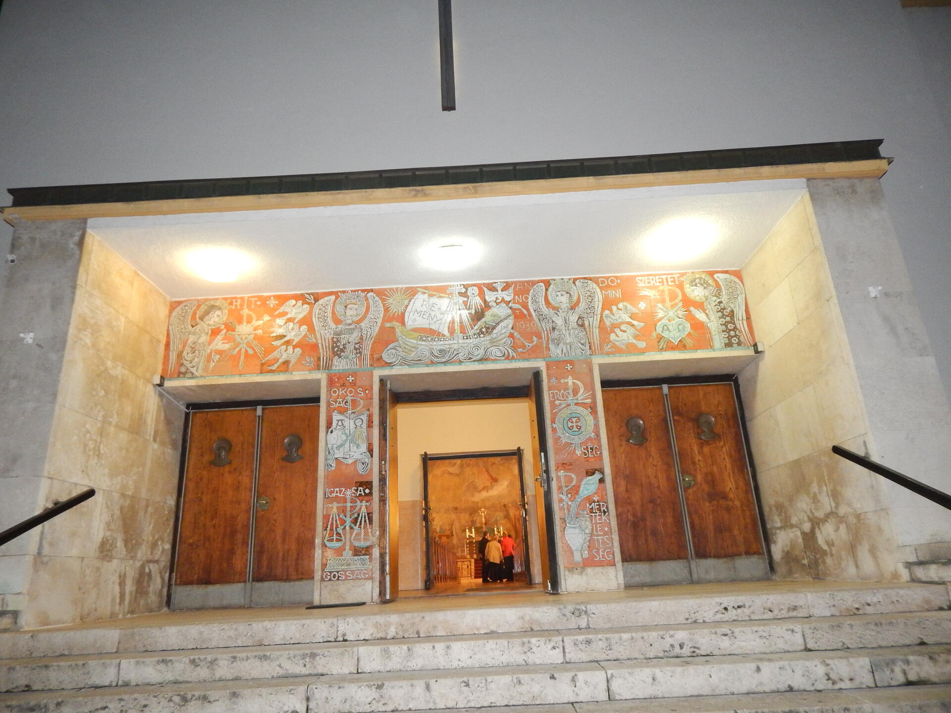 Az Apor Vilmos püspök által 1943-ban felszentelt templomot Körmendy Nándor tervezte. A bejárati homlokzatrészt Kovács Margit kerámiája ékesíti. Az előcsarnokban két mozaikkép (Szent Antal, Szent Teréz) és két festmény (Szent József, Szent Filoména) látható. A templombelső teljes falfelületét Szőnyi István sokalakos képsorozata tölti be.