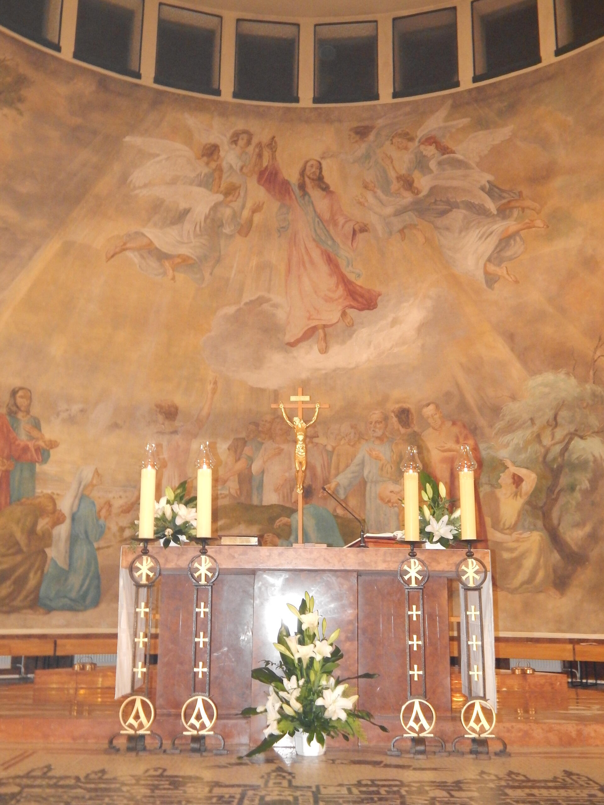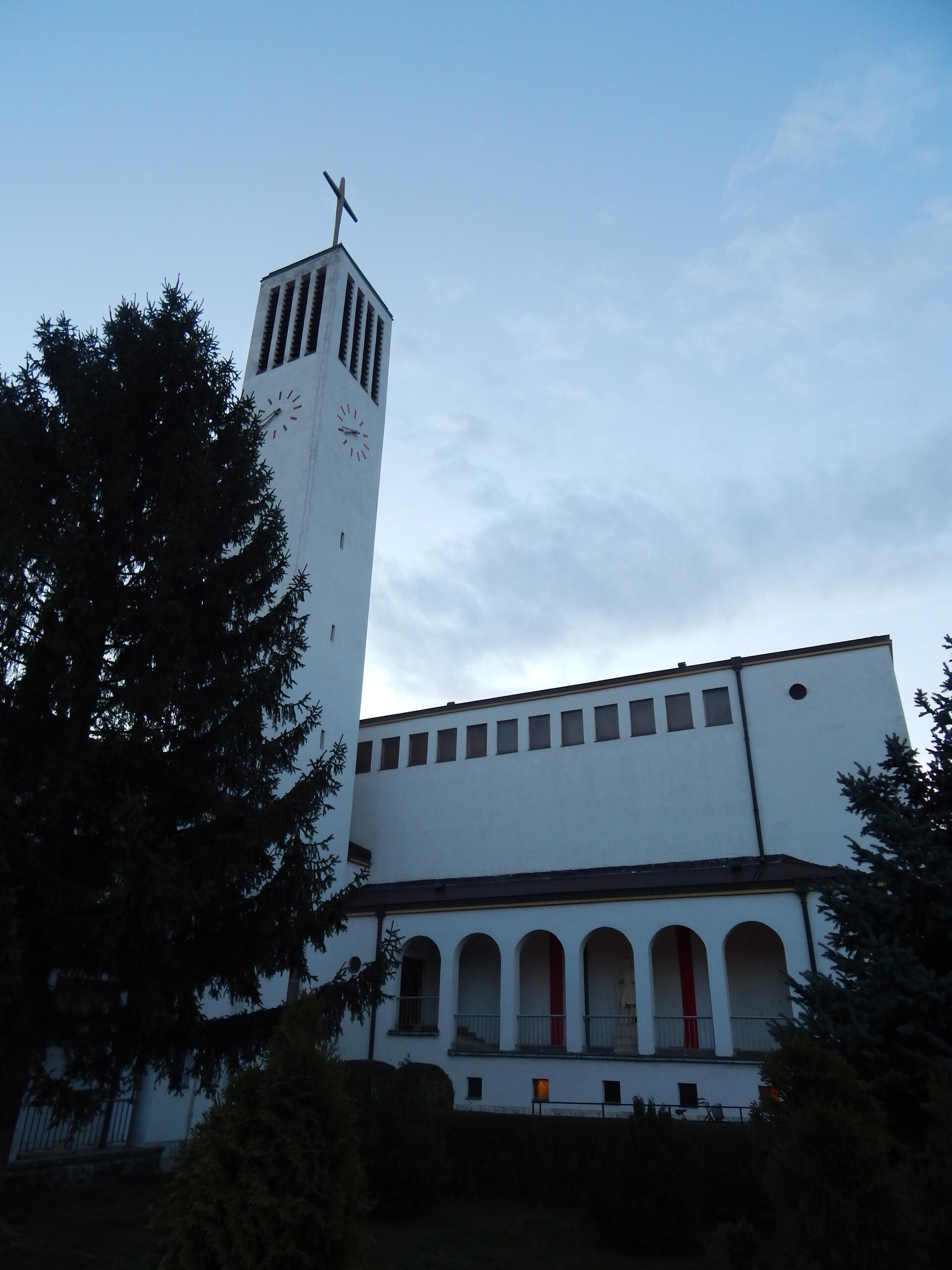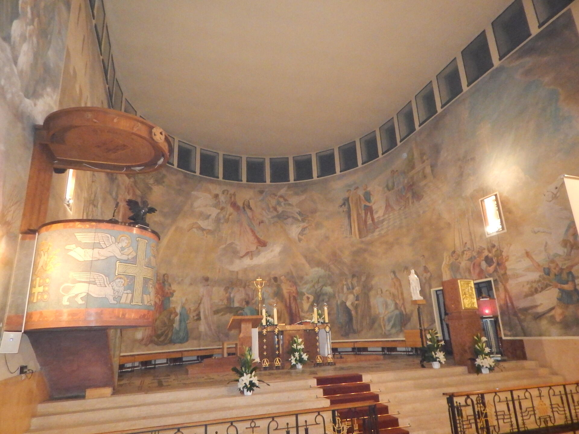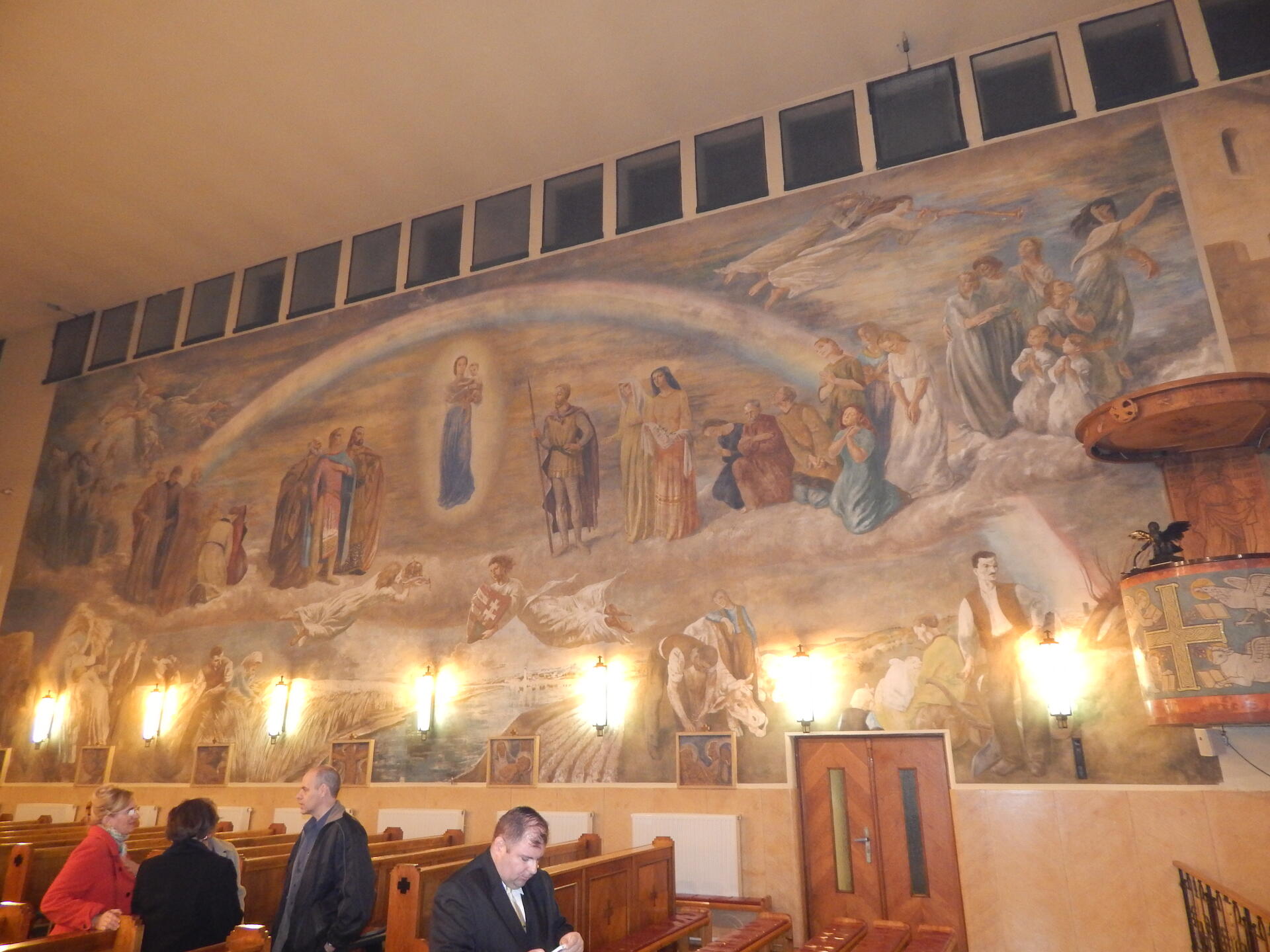 Az Apor Vilmos püspök által 1943-ban felszentelt templomot Körmendy Nándor tervezte. A bejárati homlokzatrészt Kovács Margit kerámiája ékesíti. Az előcsarnokban két mozaikkép (Szent Antal, Szent Teréz) és két festmény (Szent József, Szent Filoména) látható. A templombelső teljes falfelületét Szőnyi István sokalakos képsorozata tölti be.