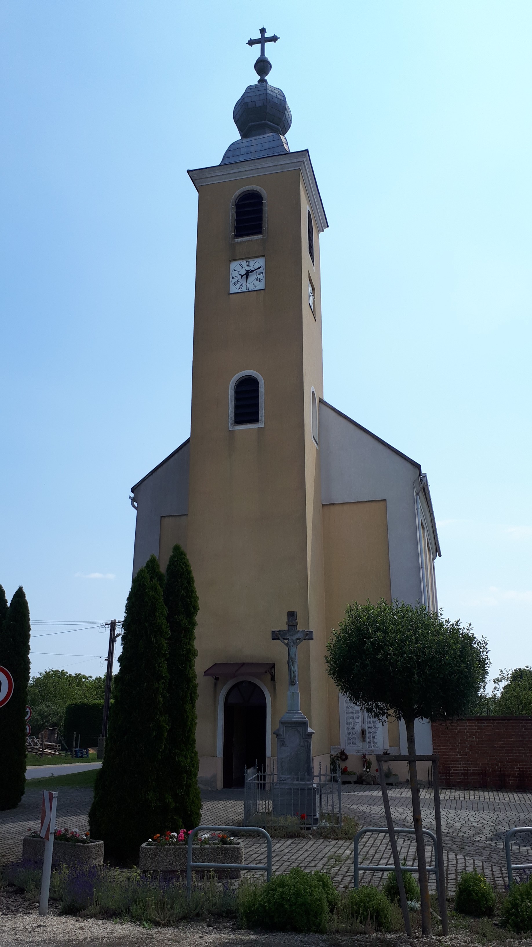 A község korábbi, Szentlélek tiszteletére emelt templomát a 17. század közepén a protestánsok használták. Az 1674-ben épült templom már a katolikusok számára készült, és Széchényi György kalocsai érsek szentelte fel.