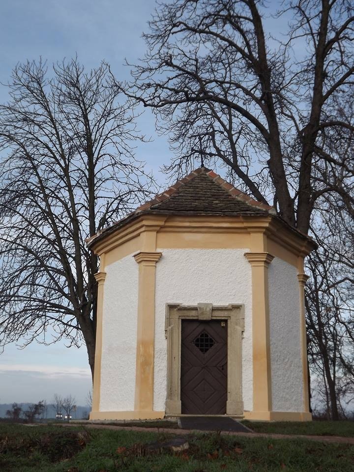 Az útmenti, nyolcszögletes alaprajzú Peregrinus-kápolnát Viczay Jób felesége, Ebergényi Eszter emeltette 1709-ben, a lábfájósok és vándorok pártfogójának tiszteletére.