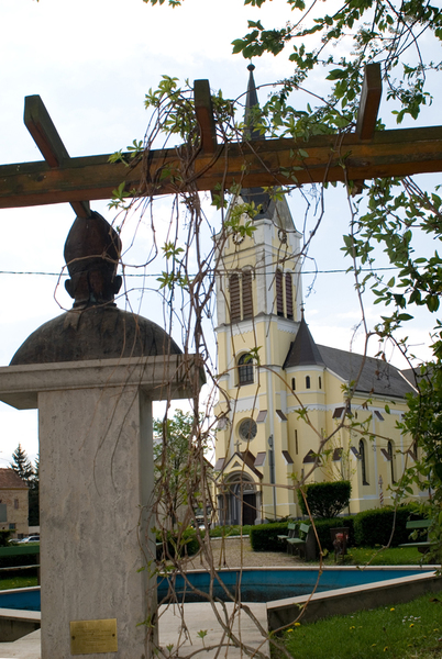 A templom mellett álló kereszt a Zalaegerszegi Falumúzeumban lévő göcseji kereszt másolata.