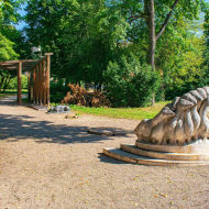A Savaria Múzeum parkjában a filagória alatti dombormű a remeteséghez vonzódó Mártont ábrázolja és egyben felidézi a püspökké...
